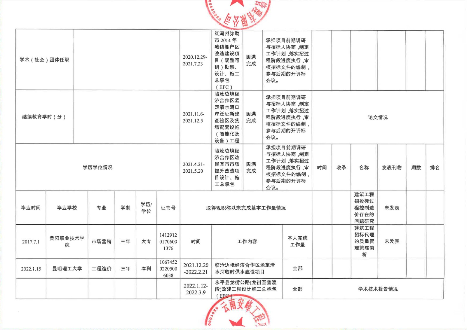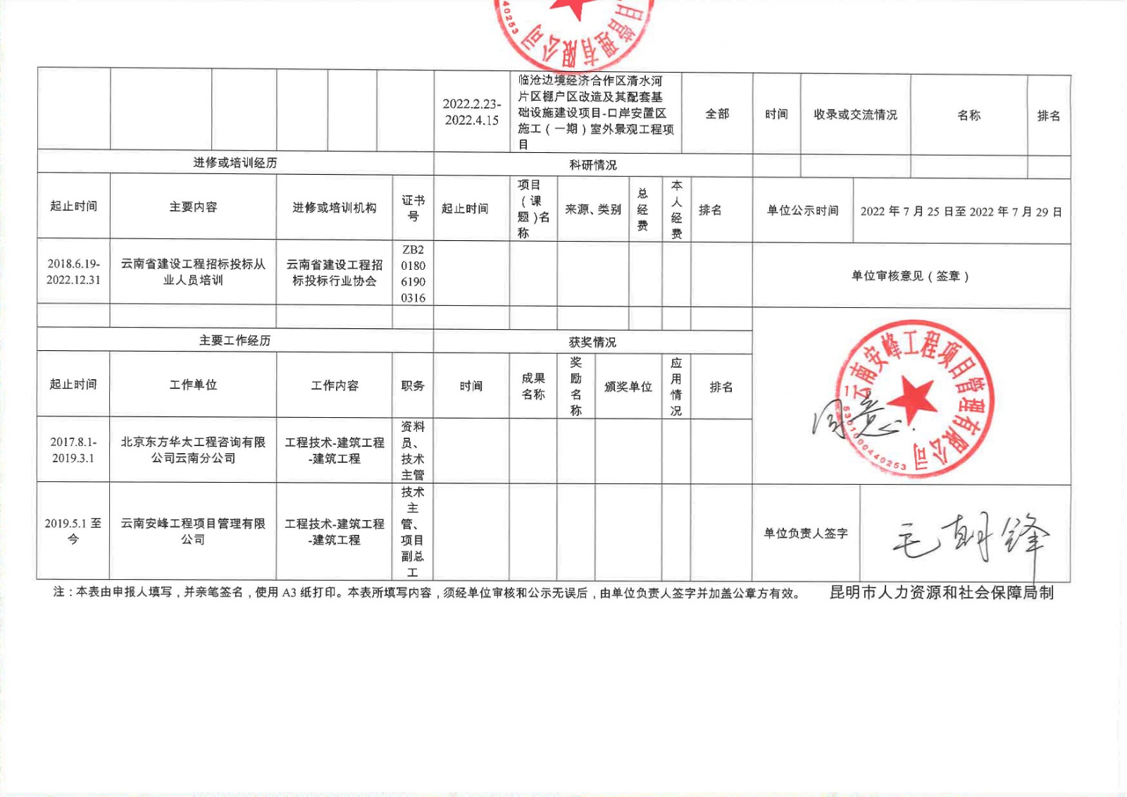 關(guān)于云南安峰工程項(xiàng)目管理有限公司員工王乾申報(bào)建筑工程系列(專業(yè))中級(jí)職稱情況公示