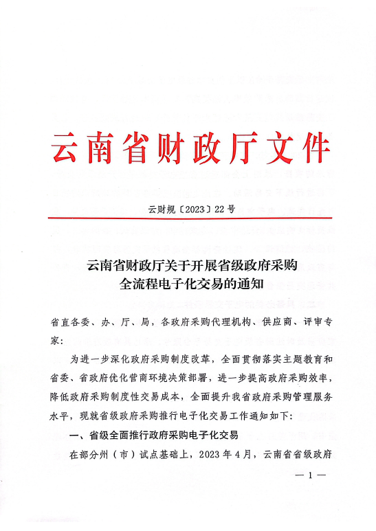 云南省財政廳關于開展省級政府采購全流程電子化交易的通知