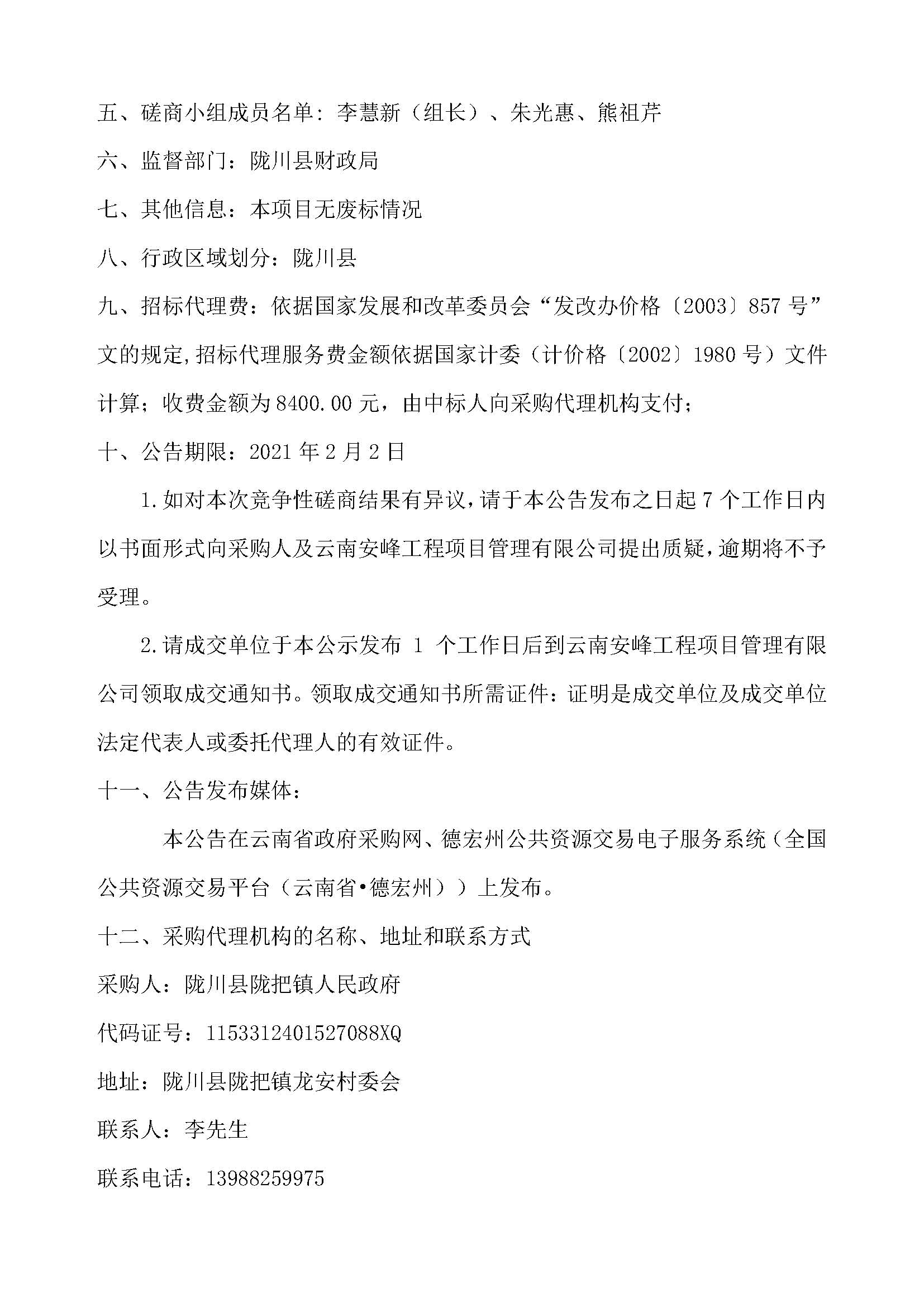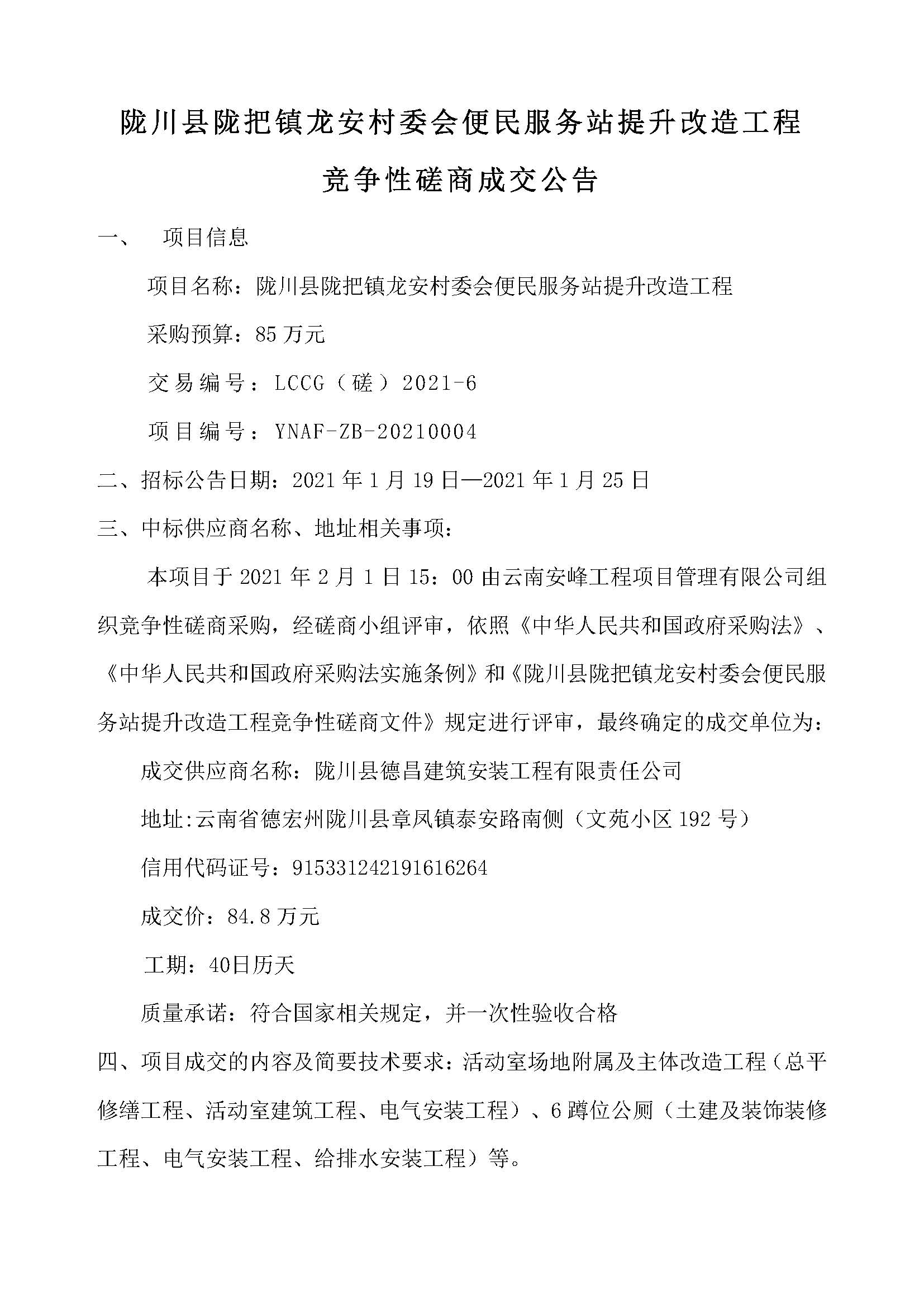 隴川縣隴把鎮龍安村委會便民服務站提升改造工程 競爭性磋商成交公告