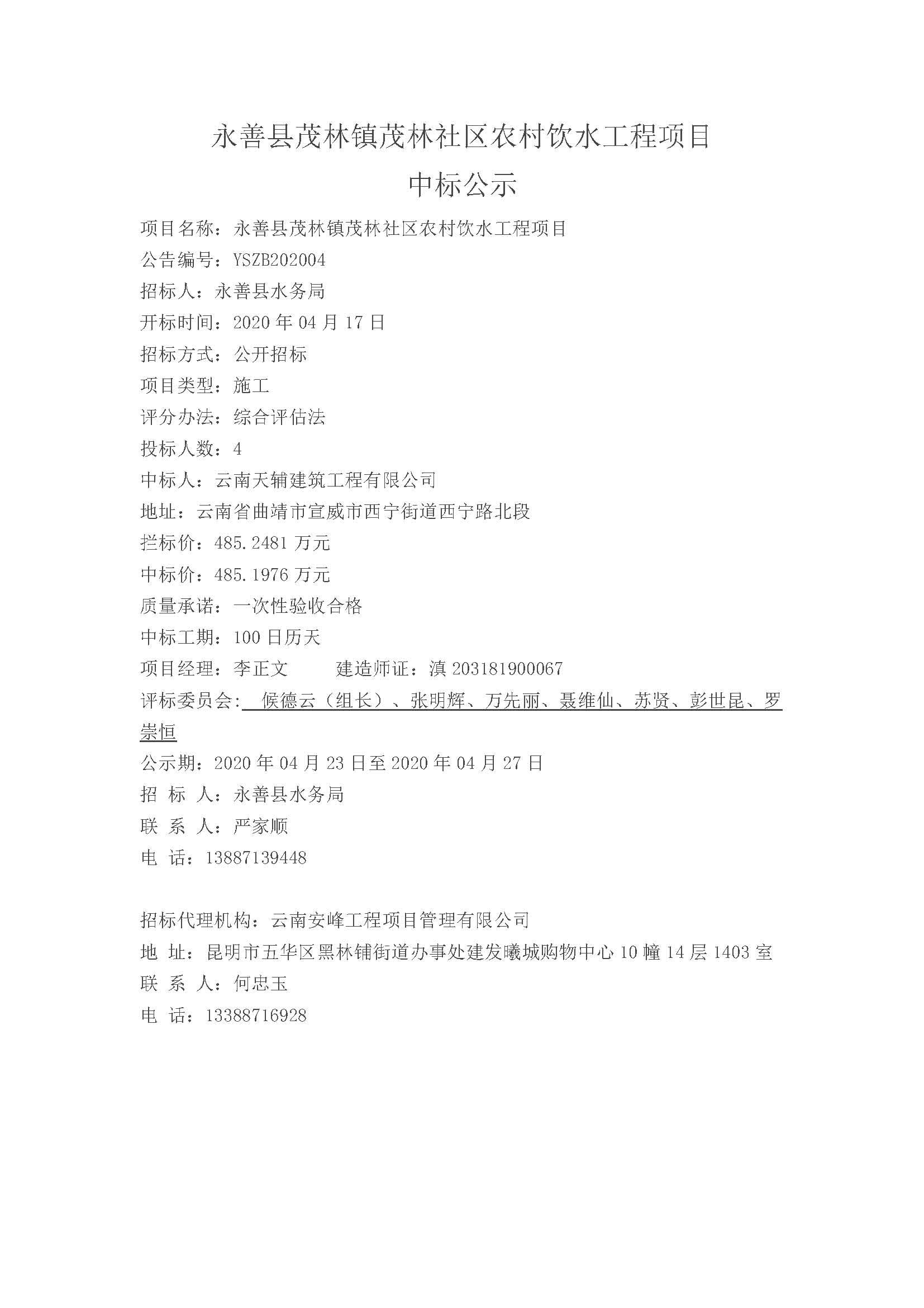 永善縣茂林鎮茂林社區農村飲水工程項目