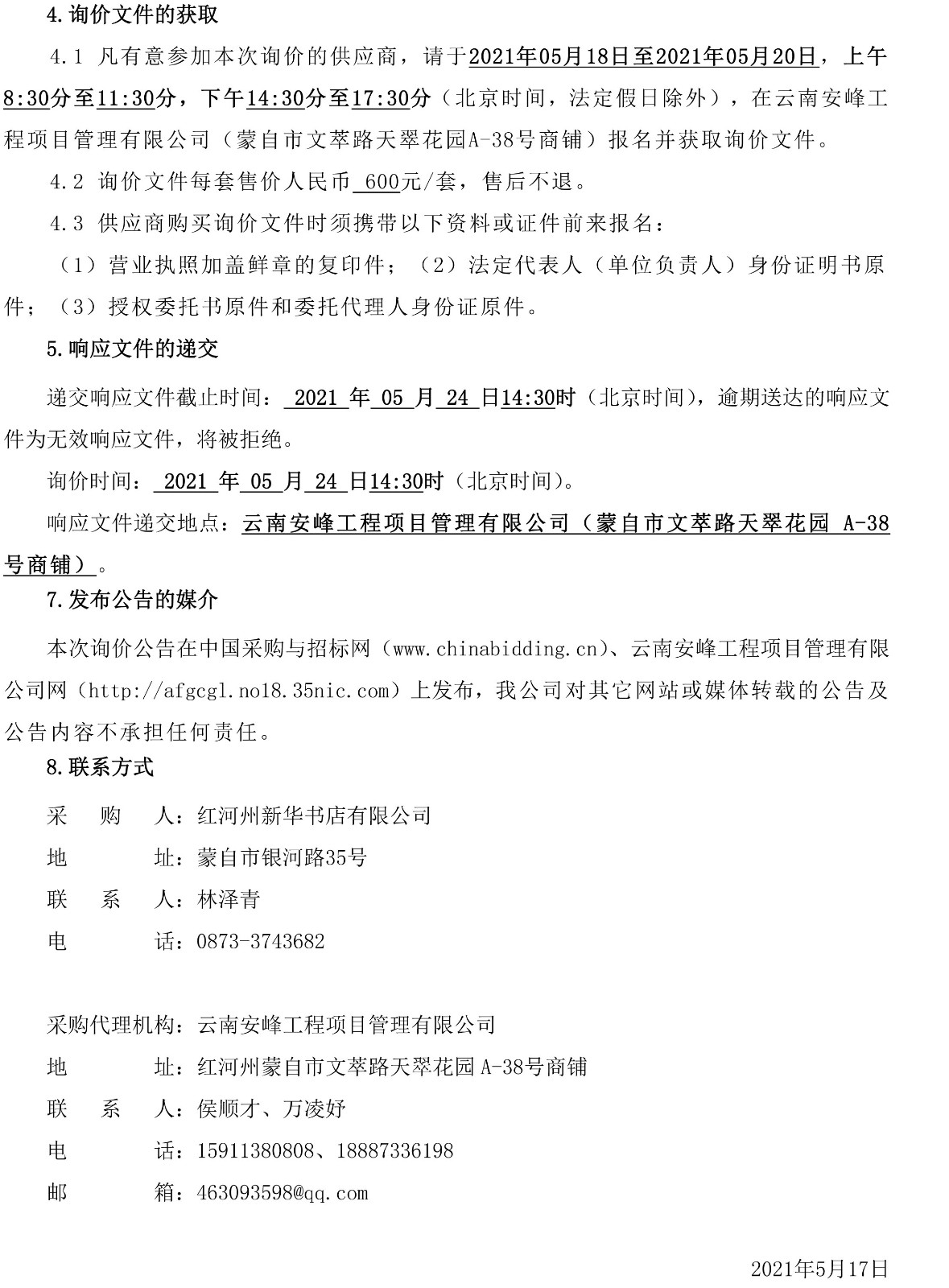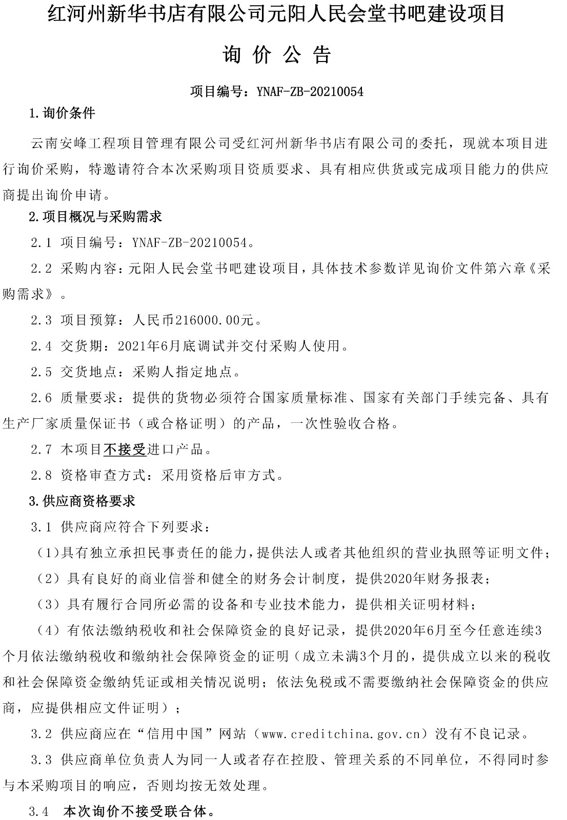 紅河州新華書店有限公司元陽人民會堂書吧建設項目詢價公告