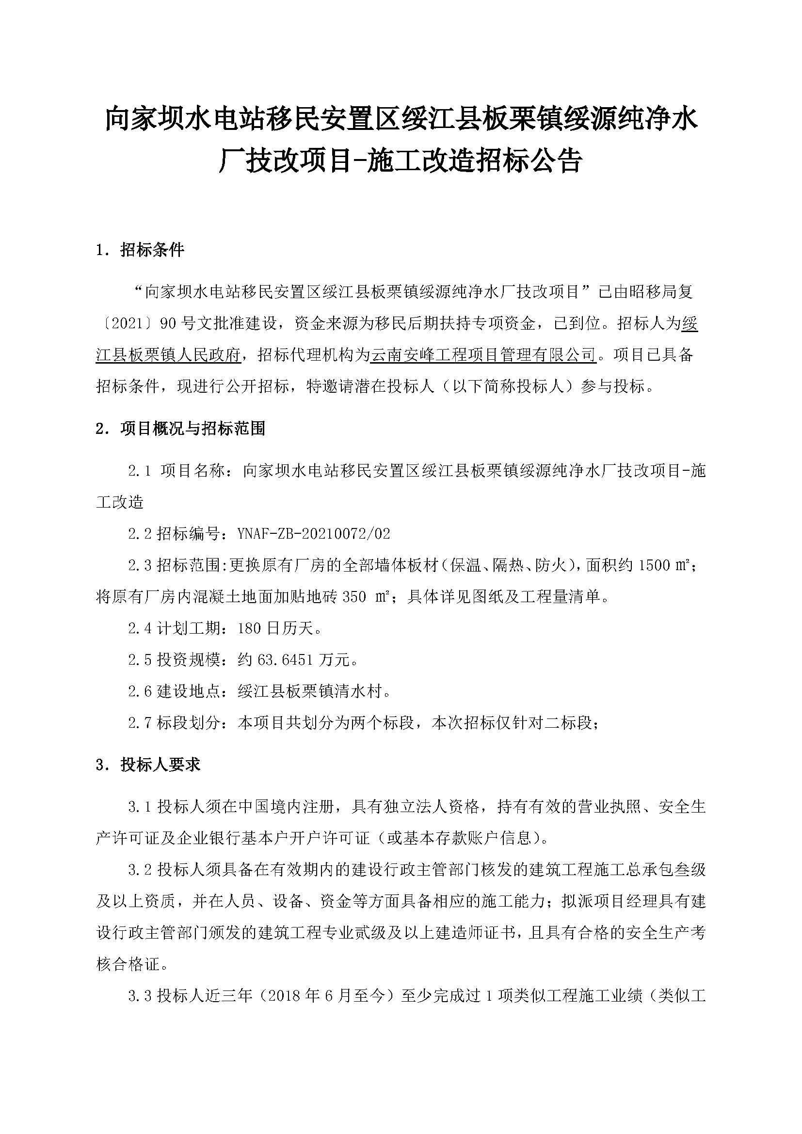 向家壩水電站移民安置區(qū)綏江縣板栗鎮(zhèn)綏源純凈水廠技改項(xiàng)目-施工改造招標(biāo)公告