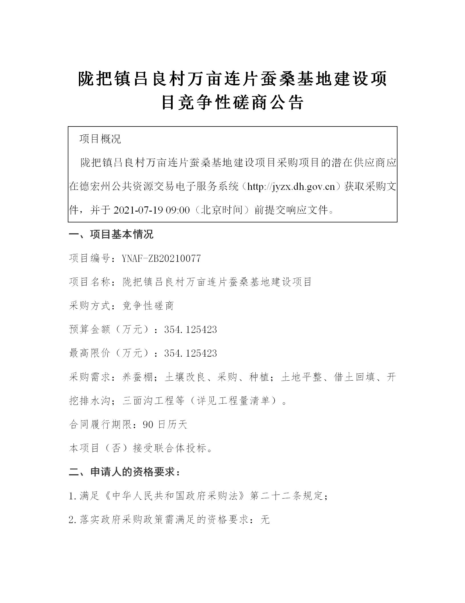 隴把鎮(zhèn)呂良村萬畝連片蠶桑基地建設(shè)項目競爭性磋商公告