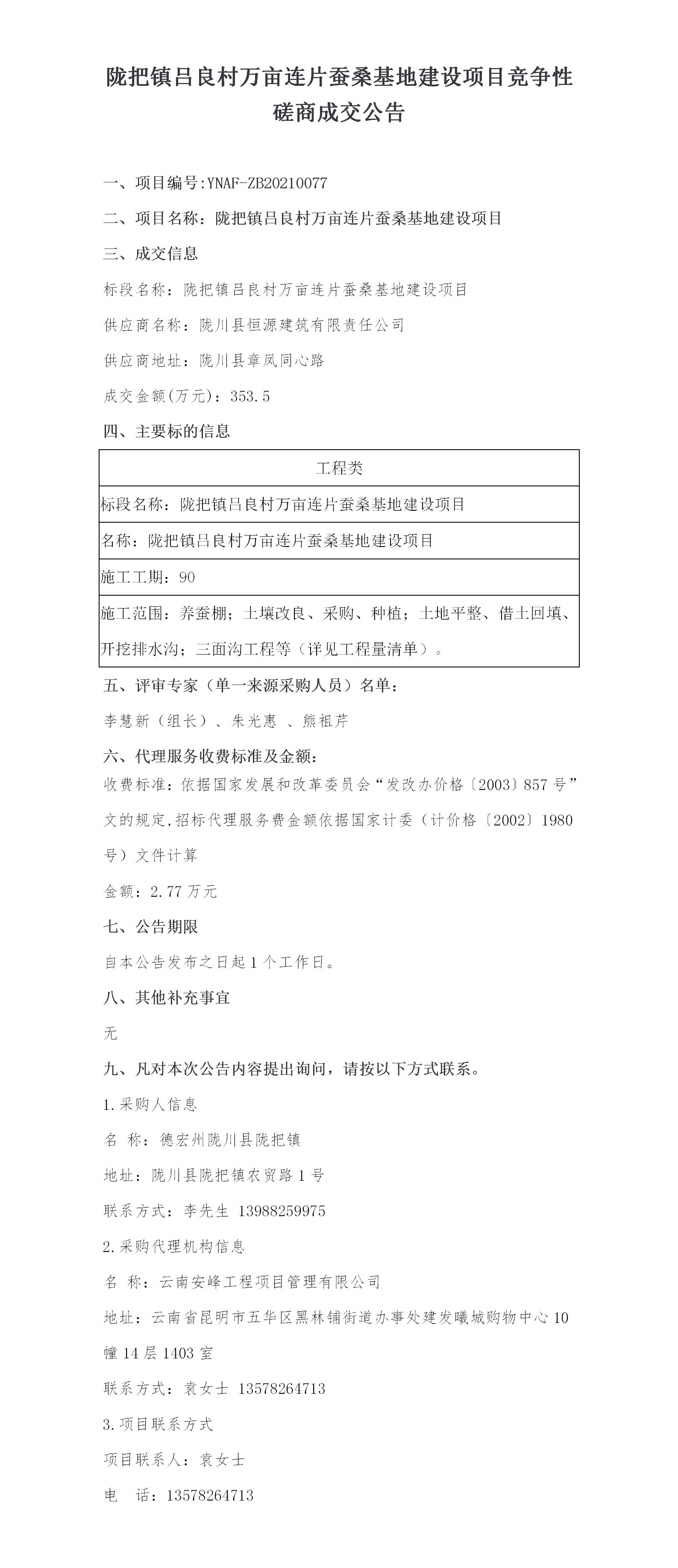 隴把鎮呂良村萬畝連片蠶桑基地建設項目競爭性磋商成交公告