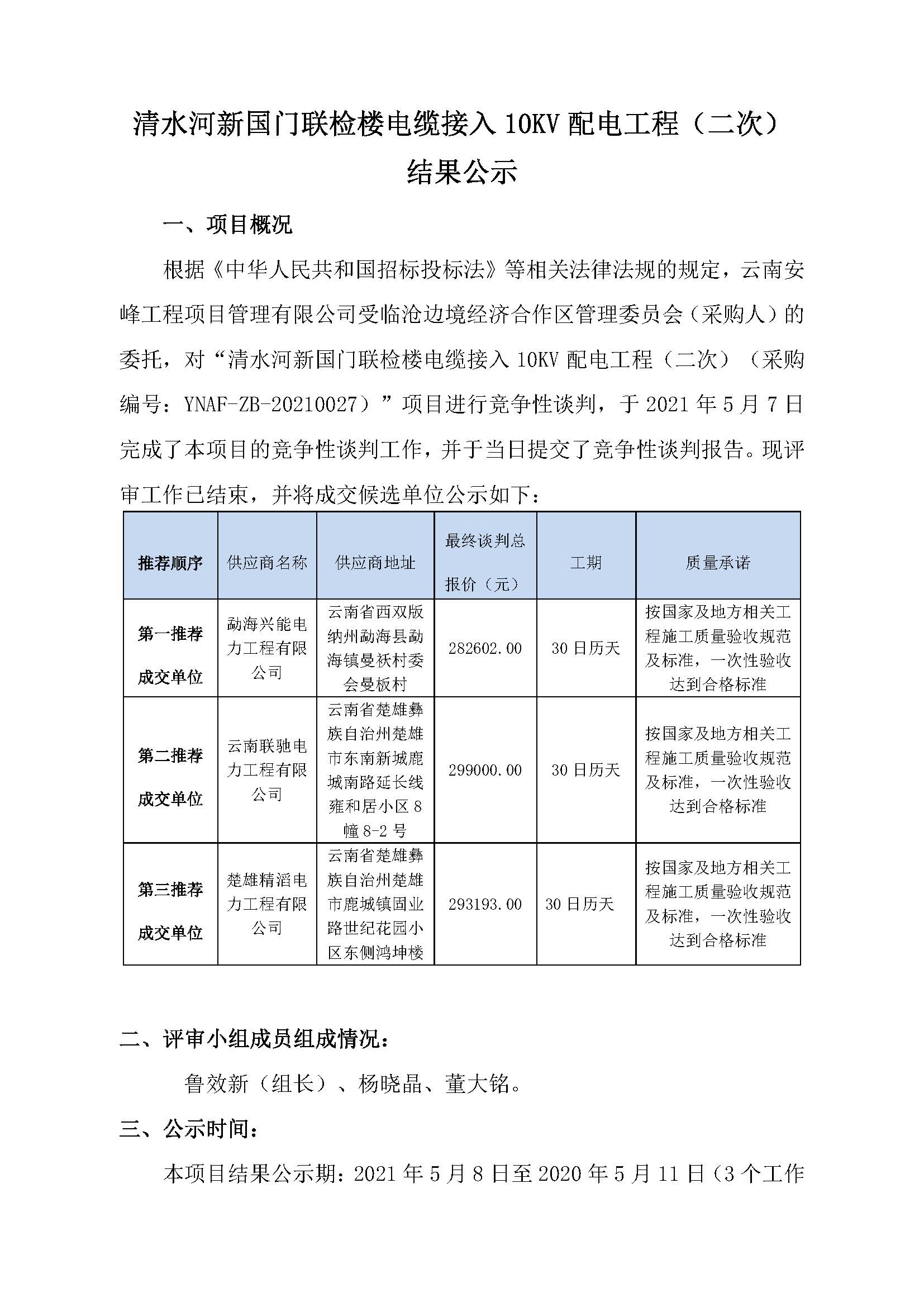 清水河新國門聯檢樓電纜接入10KV配電工程(二次)