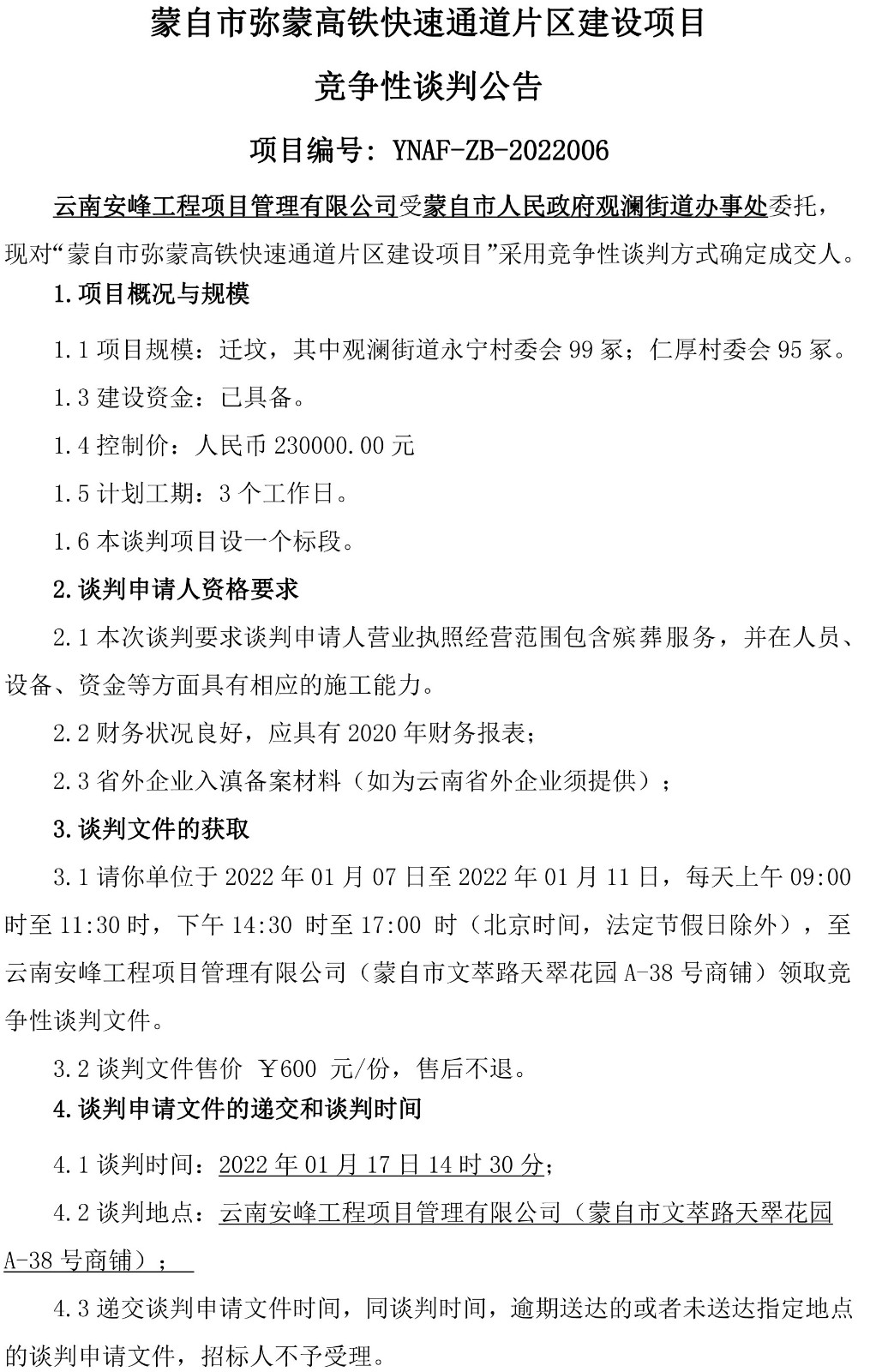 蒙自市彌蒙高鐵快速通道片區(qū)建設(shè)項(xiàng)目競(jìng)爭(zhēng)性談判公告