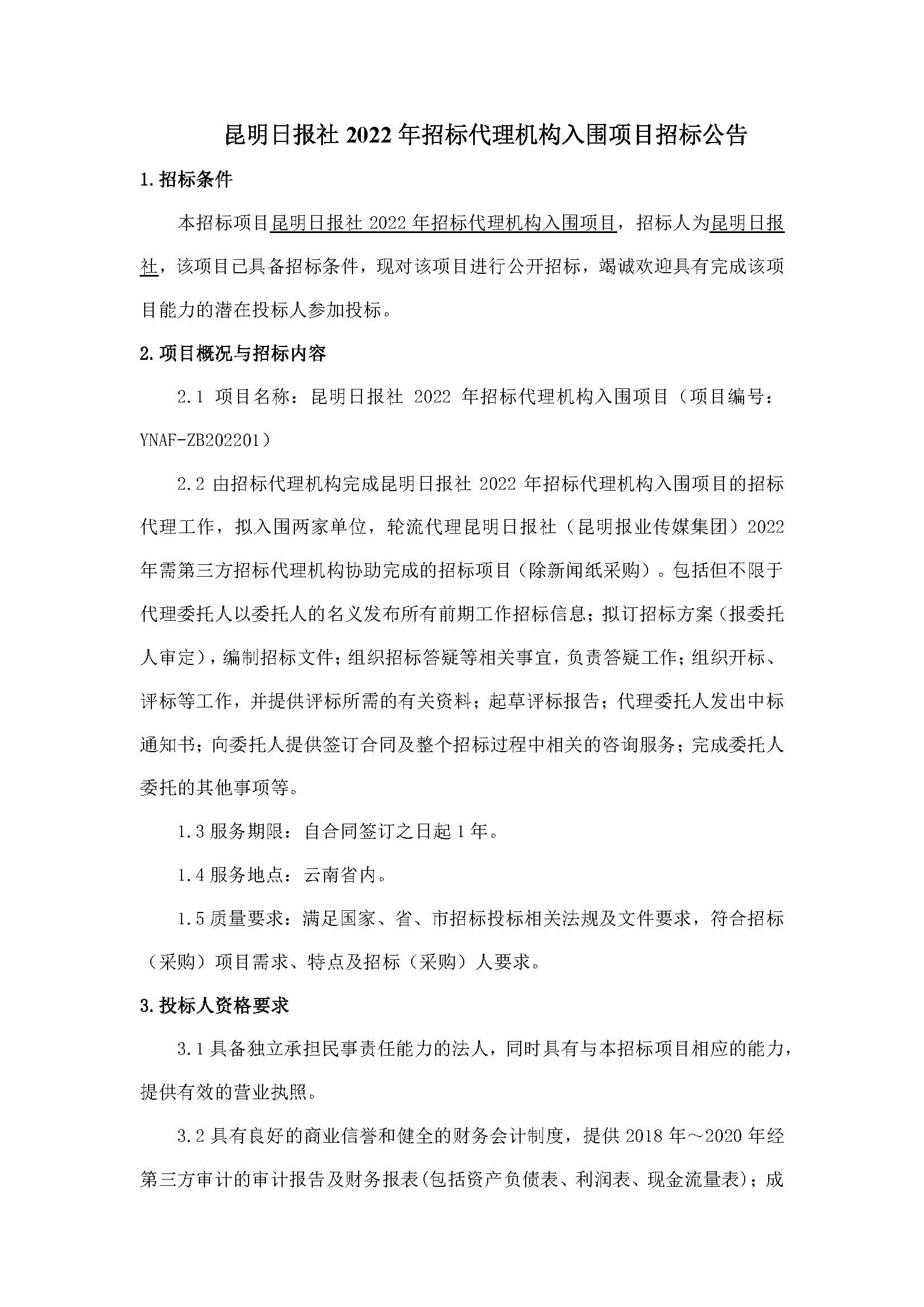 昆明日報社2022年招標代理機構(gòu)入圍項目招標公告