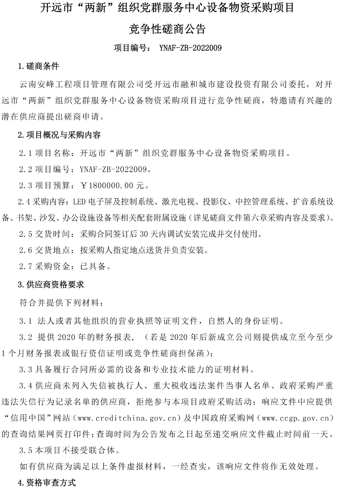 開遠市“兩新”組織黨群服務(wù)中心設(shè)備物資采購項目競爭性磋商公告