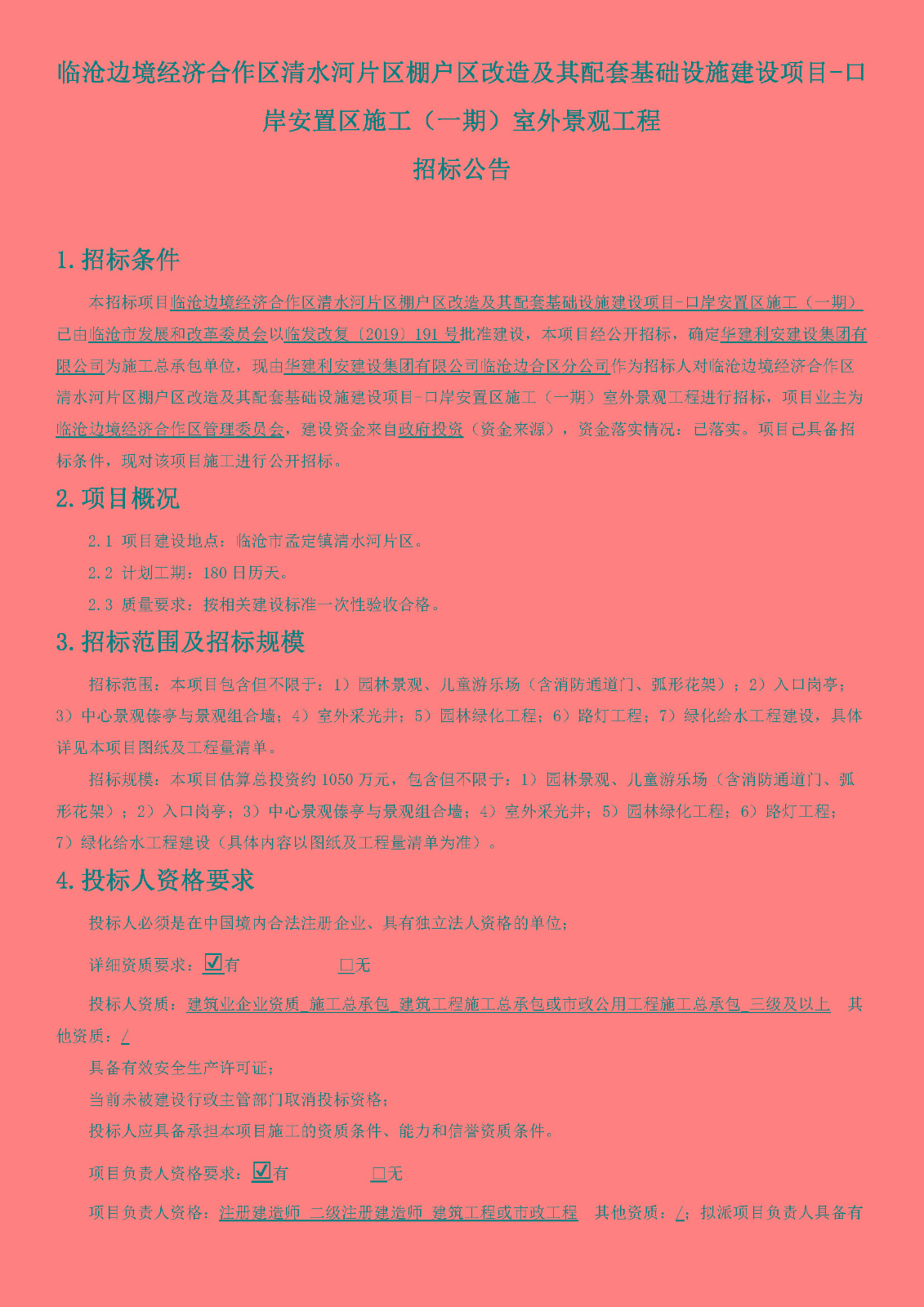 臨滄邊境經濟合作區清水河片區棚戶區改造及其配套基礎設施建設項目-口岸安置區施工(一期)室外景觀工程