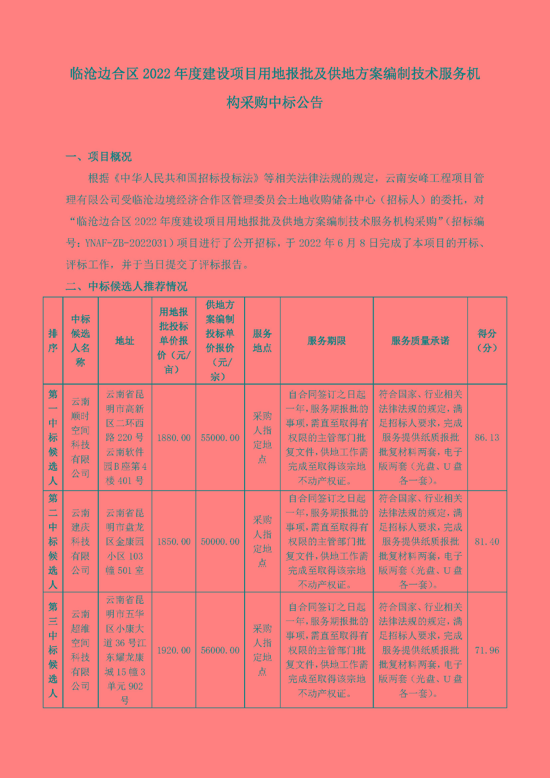 臨滄邊合區2022年度建設項目用地報批及供地方案編制技術服務機構采購