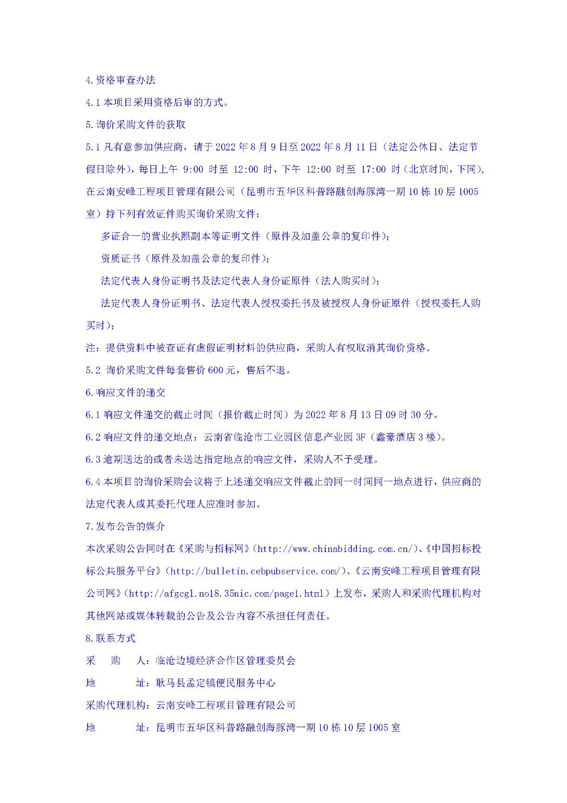 孟定清水河口岸境外(緬甸清水河)消毒區(qū)物資采購(gòu)項(xiàng)目