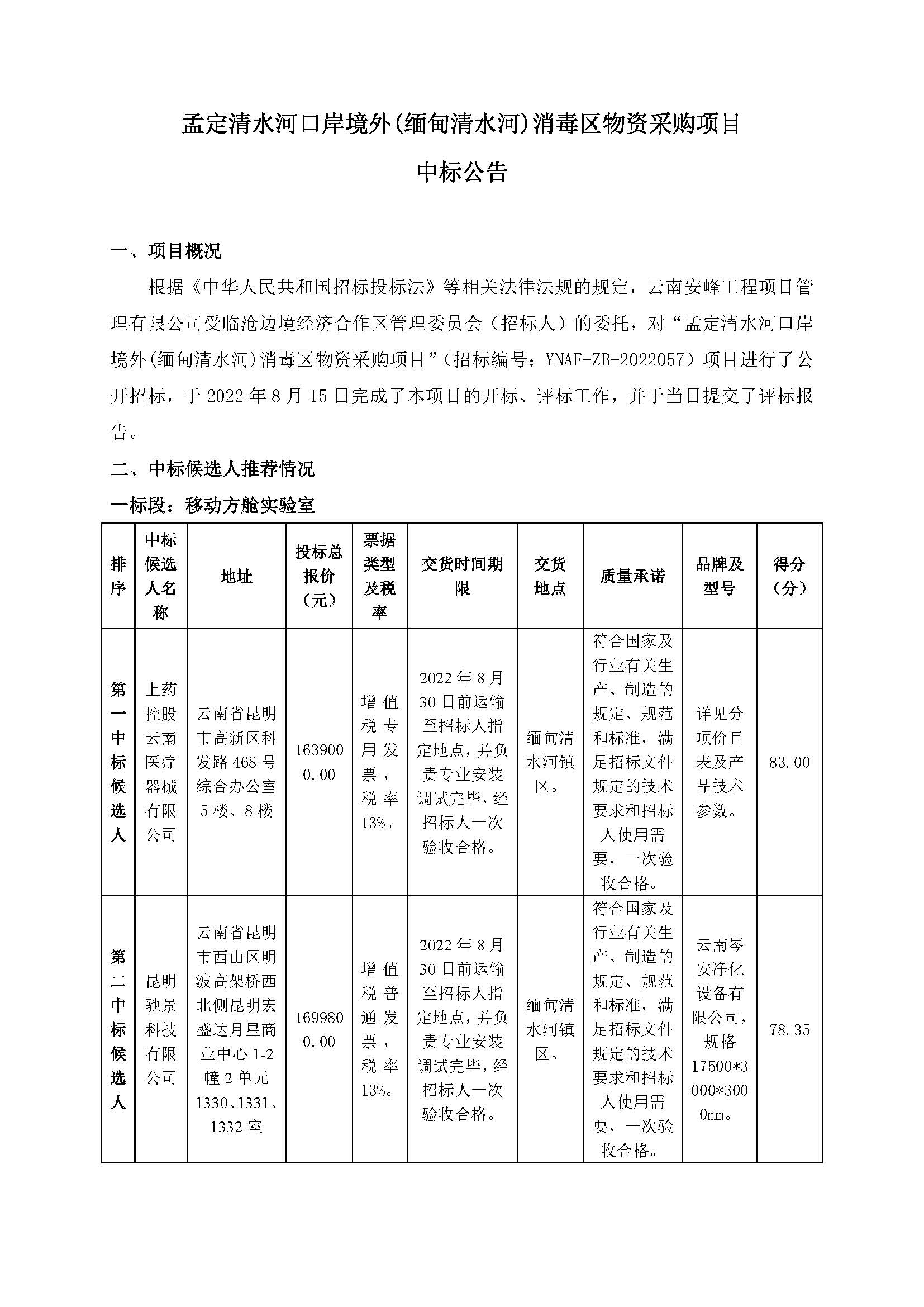 孟定清水河口岸境外(緬甸清水河)消毒區(qū)物資采購項(xiàng)目