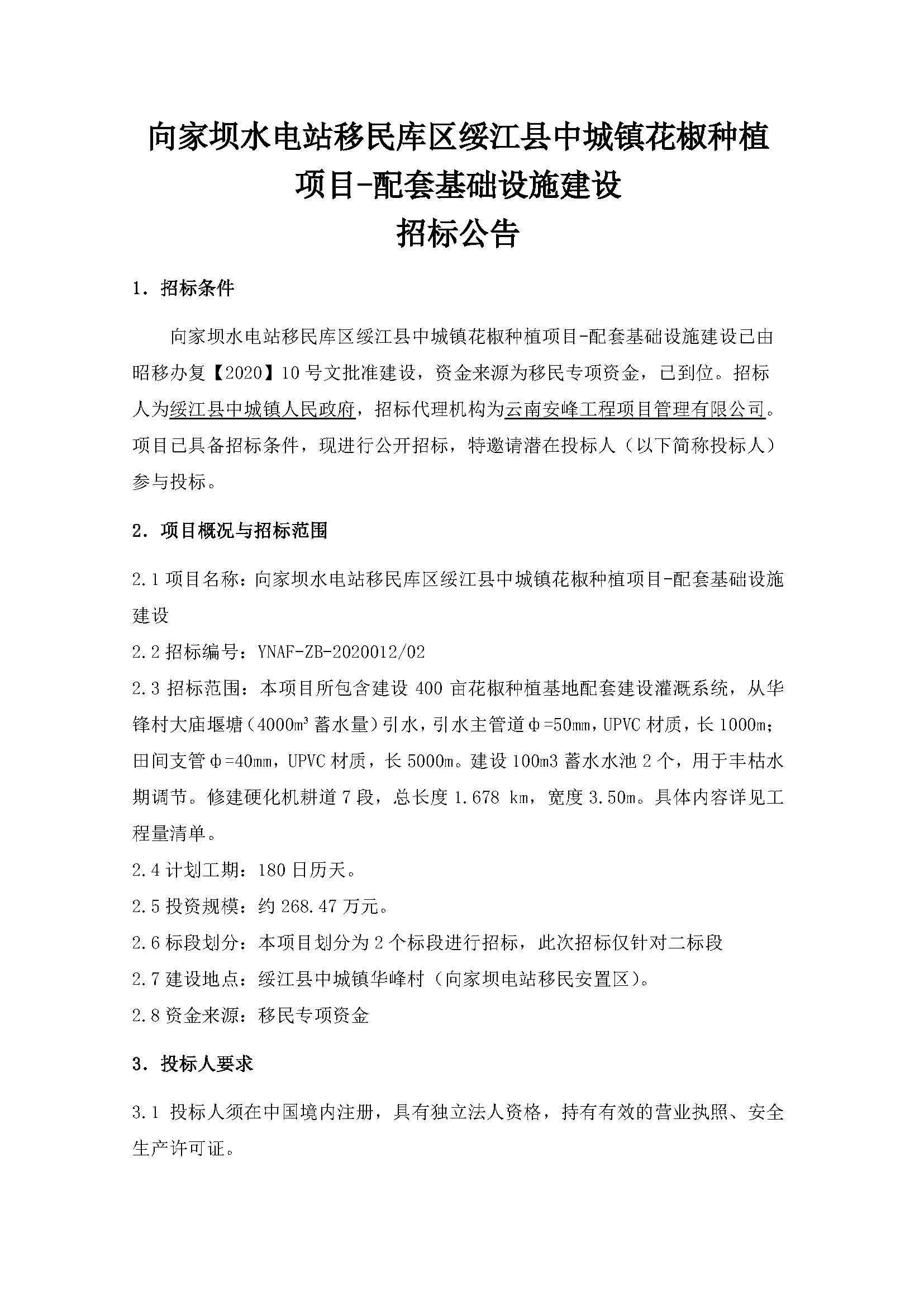 向家壩水電站移民庫區綏江縣中城鎮花椒種植項目-配套基礎設施建設