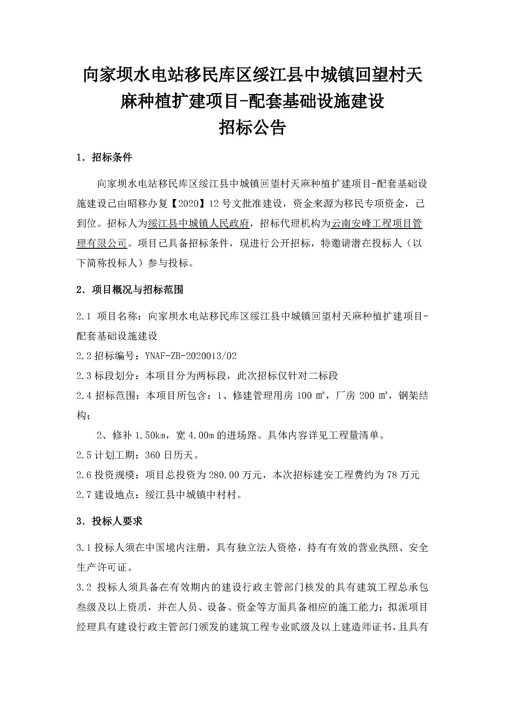 向家壩水電站移民庫區(qū)綏江縣中城鎮(zhèn)回望村天麻種植擴(kuò)建項(xiàng)目-配套基礎(chǔ)設(shè)施建設(shè)