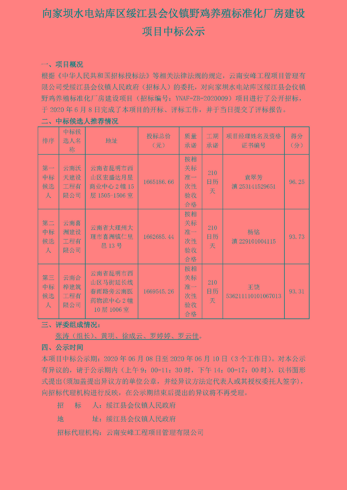 向家壩水電站庫區綏江縣會儀鎮中藥材培育項目-配套基礎設施建設中標公示