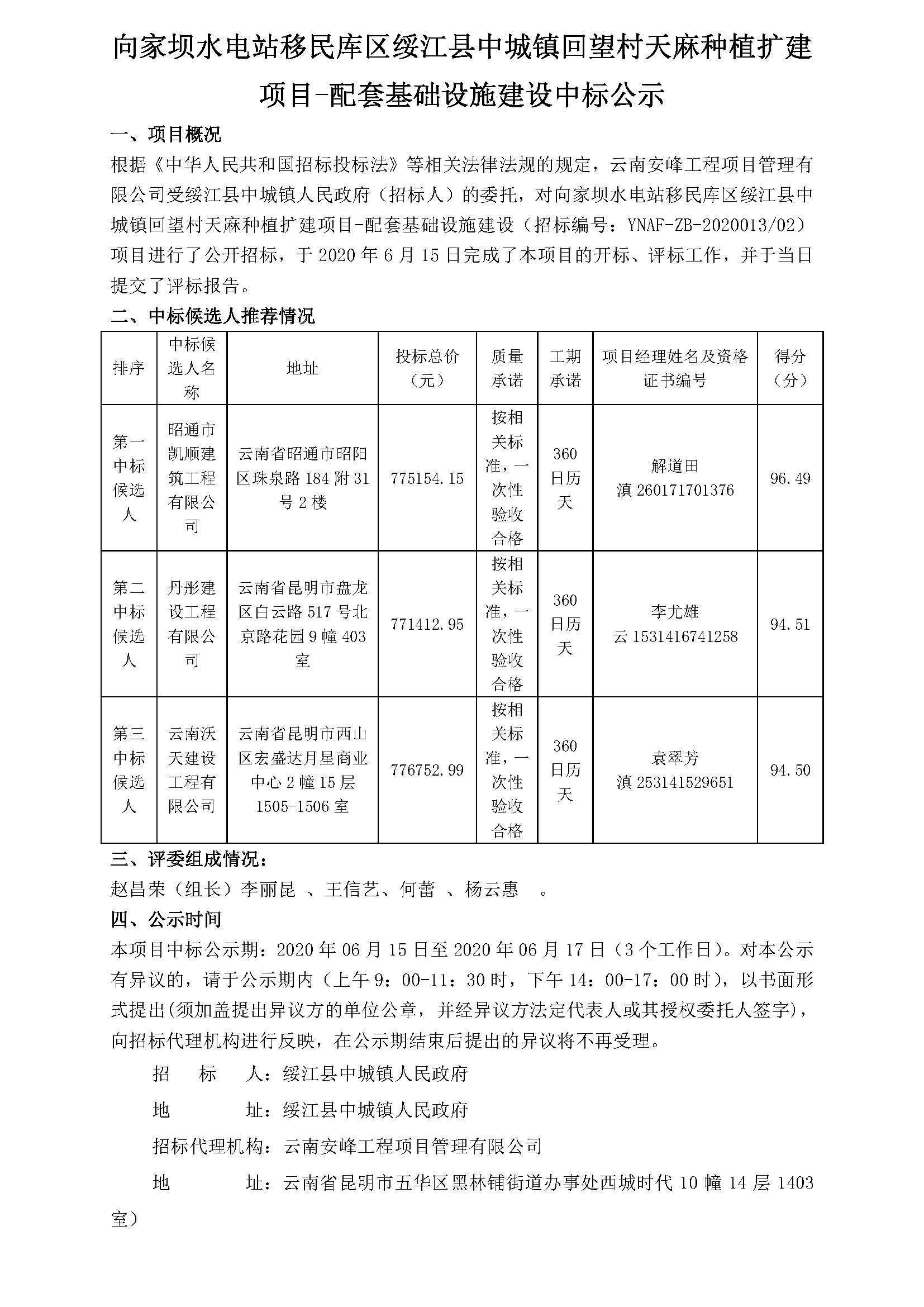 向家壩水電站移民庫區綏江縣中城鎮回望村天麻種植擴建項目-配套基礎設施建設中標公示