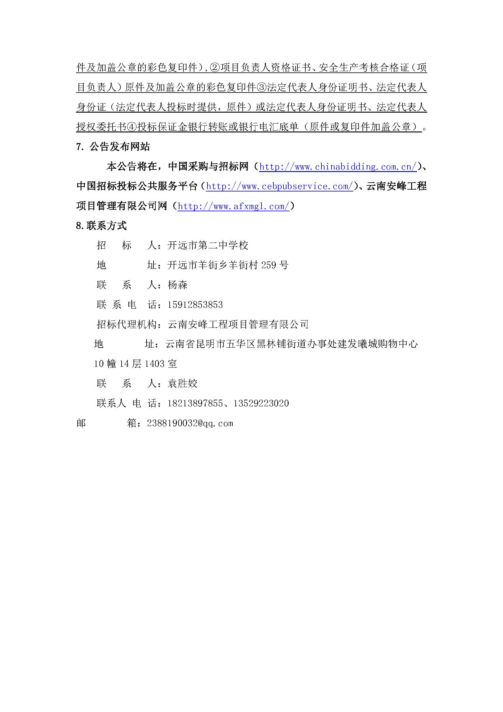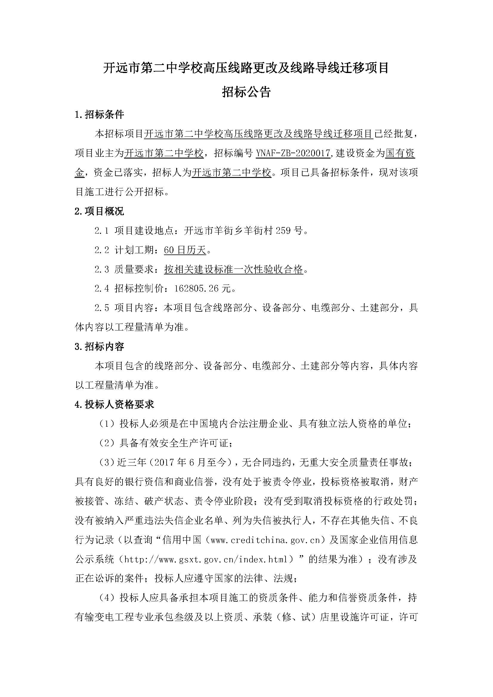 開遠市第二中學校高壓線路更改及線路導線遷移項目(二次) 招標公告