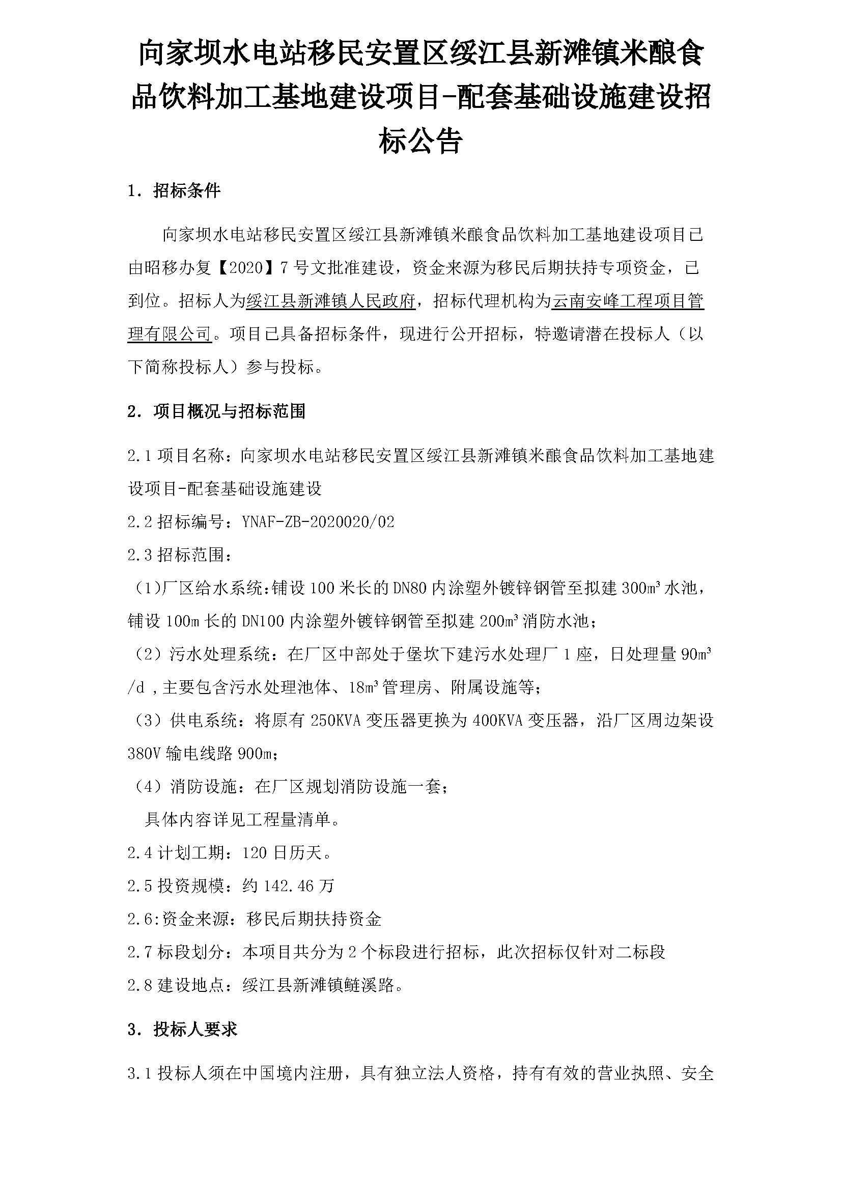 向家壩水電站移民安置區綏江縣新灘鎮米釀食品飲料加工基地建設項目-配套基礎設施建設招標公告