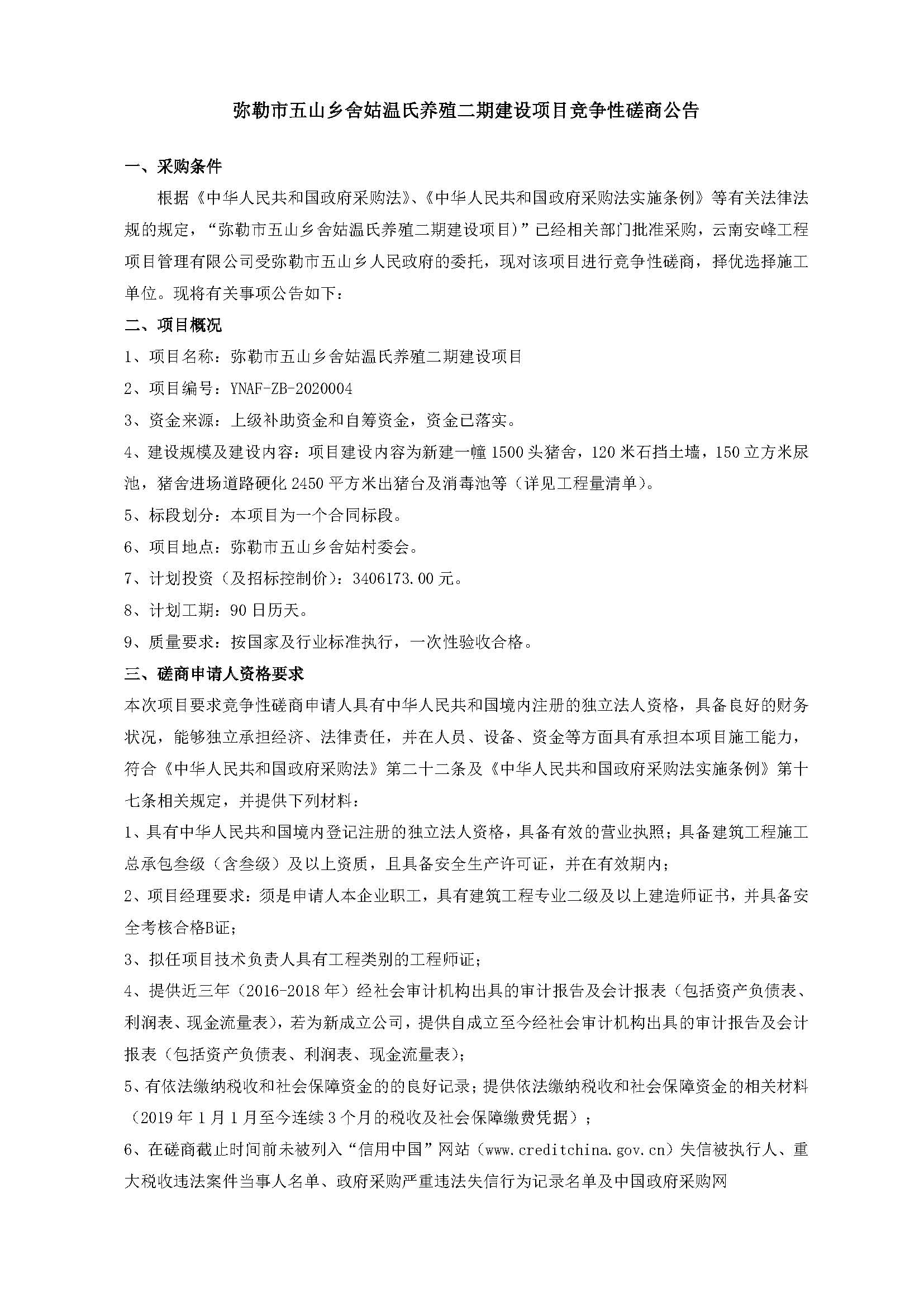 彌勒市五山鄉舍姑溫氏養殖二期建設項目競爭性磋商