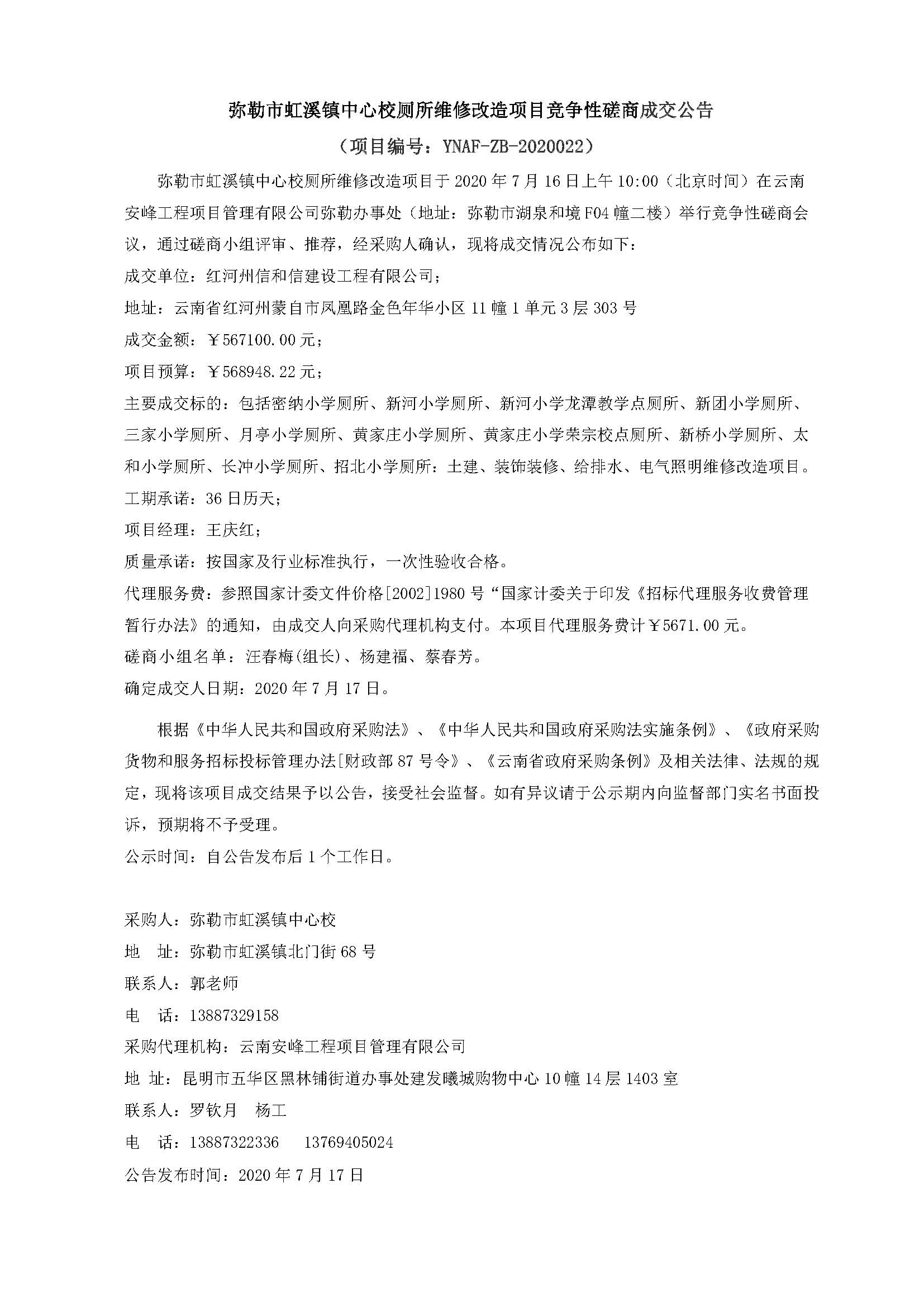 彌勒市虹溪鎮中心校廁所維修改造項目競爭性磋商成交公告
