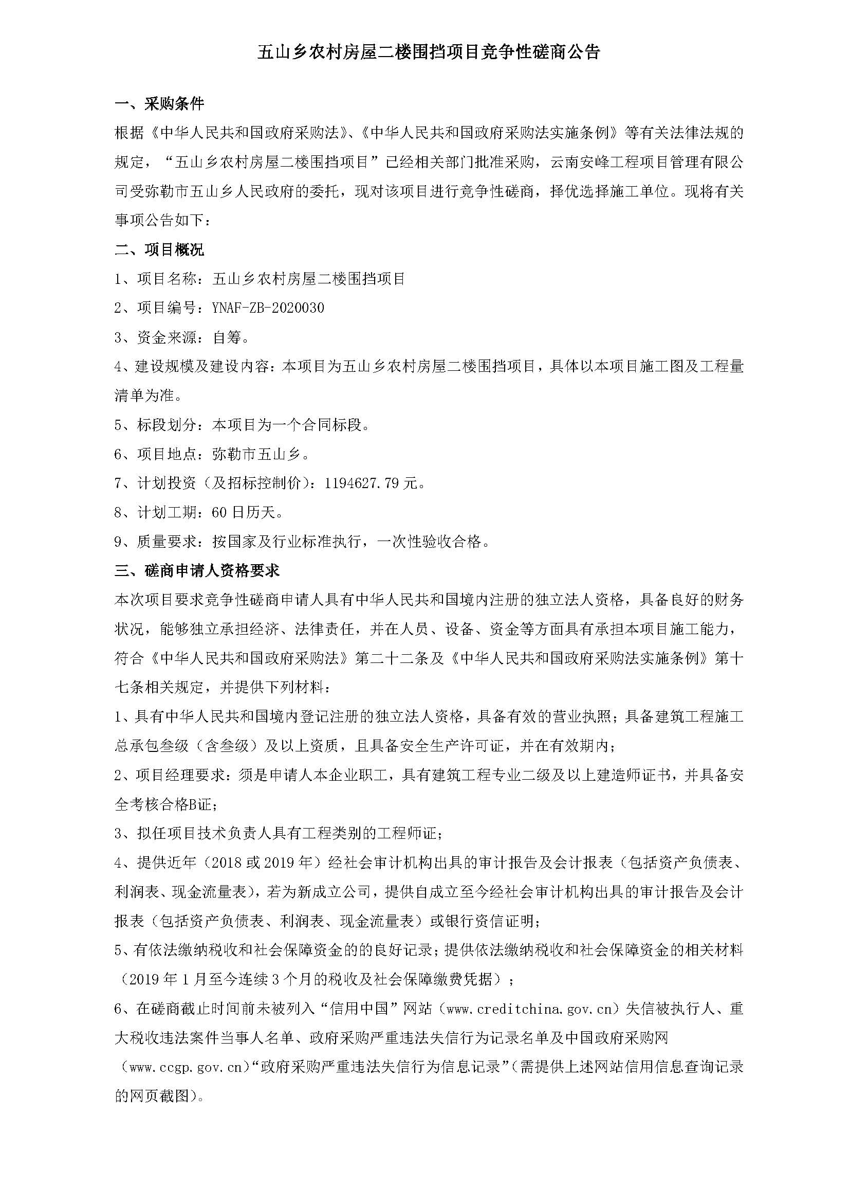 五山鄉農村房屋二樓圍擋項目競爭性磋商公告