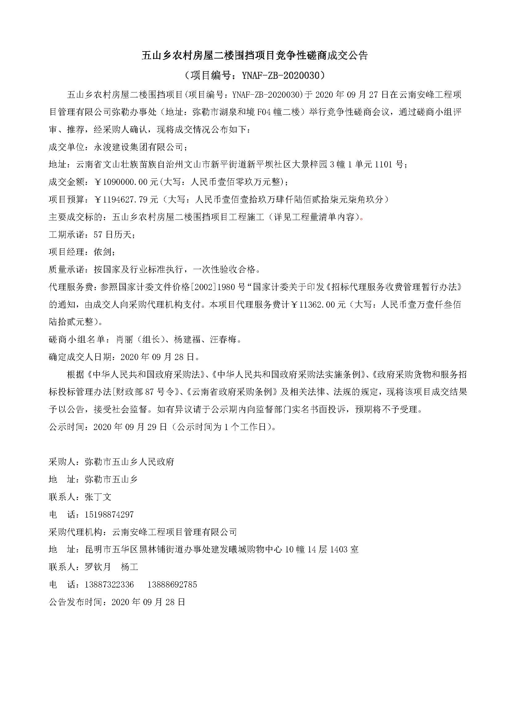 五山鄉農村房屋二樓圍擋項目競爭性磋商成交公告