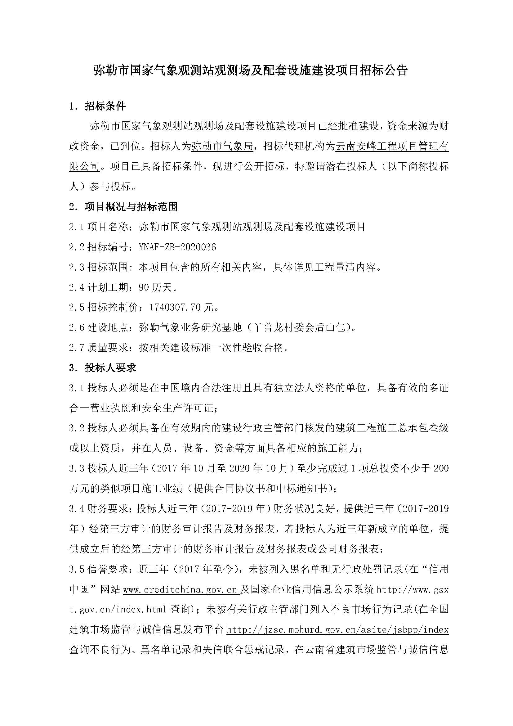 彌勒市國家氣象觀測站觀測場及配套設施建設項目招標公告