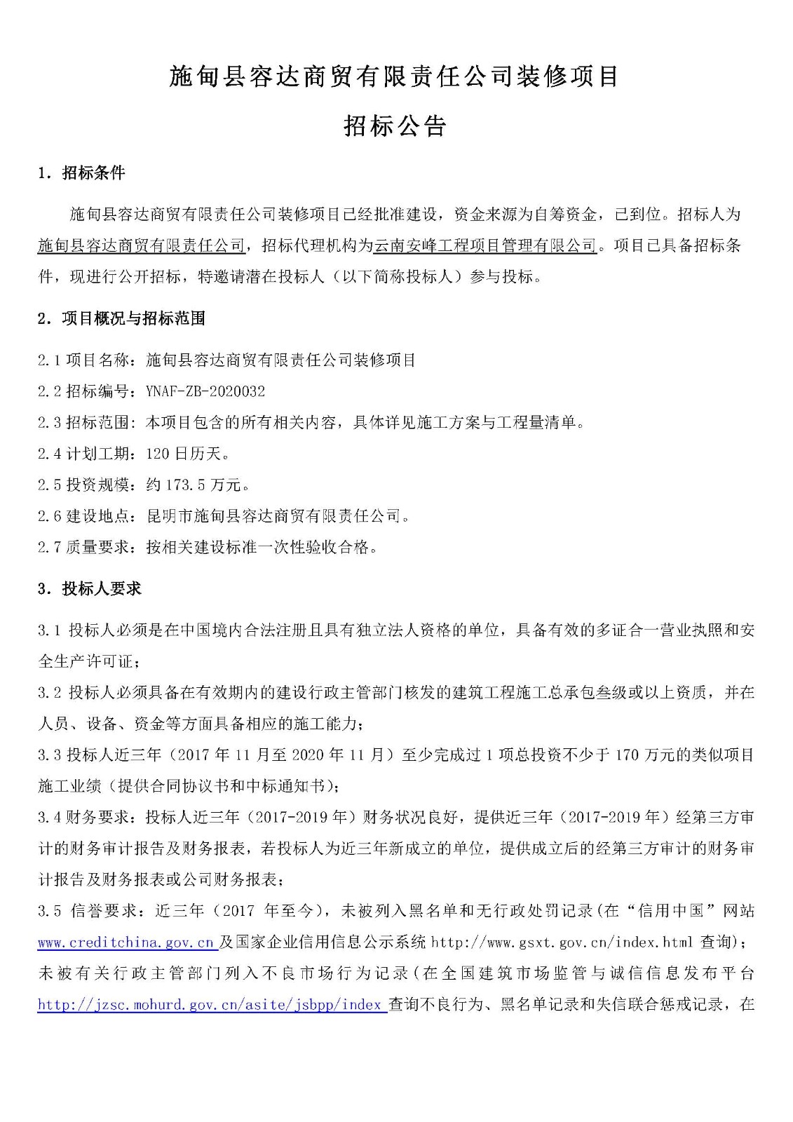 施甸縣容達商貿(mào)有限責(zé)任公司裝修項目招標公告